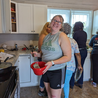 Carol Caldwell, programming coordinator for the GHW Center, said "We did have fun!! The pictures don't capture the fun!! One interesting item: we made roasted sweet potato wedges, and the class was expecting to use cinnamon, nutmeg and brown sugar on the sweet potato wedges but they were treated to a more savory experience with ground cumin, ground cloves, ground curry powder, salt, pepper and olive oil!"